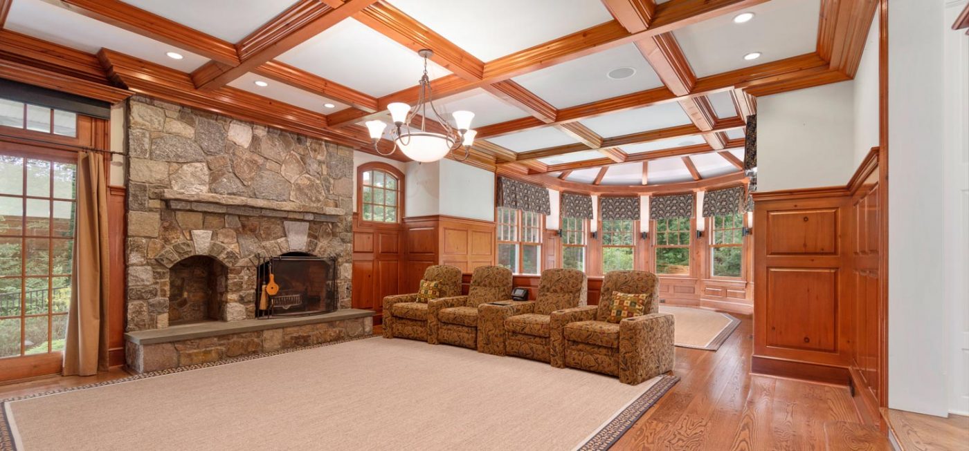 Designed in collaboration with Phoenix Audio Video of Fairfield, CT, the home’s technology systems are easily controlled by a series of one-touch, wall-mounted digital panels located throughout its living areas. From these stations everything from the garage doors to the waterfall within the 7-seat spa can be controlled by a fingertip! Sensors throughout the Property are set to trigger customized commands in the event of snow, rain or the arrival of dinner guests. A 25-kW generator and battery backups assure power is uninterrupted, even in inclement weather.