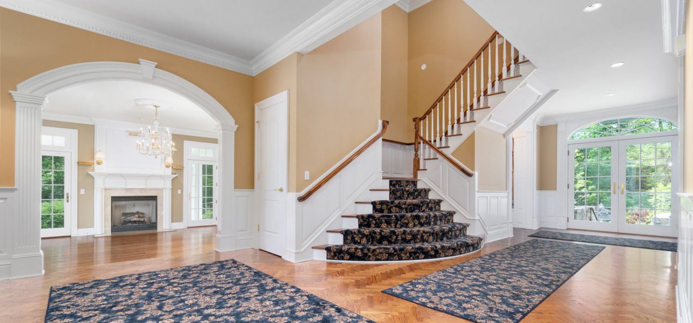The home’s first floor is built for entertaining, and offers a sunken living room and grand dining room – all enhanced by handsome wood molding and hardwood floors. The rear of the residence features a family room, game room and home theater, while a large, mahogany-paneled office designed by Neal Zimmerman (a leading architect in workplace planning) maximizes productivity. Second-floor bedrooms include a spacious master suite, 4 guest bedrooms and 2 full baths. In addition, 1,700 sf of “bonus space” is available for additional bedrooms or common areas, while a walk-up attic offers another 1,267 sf of storage or flexible space.