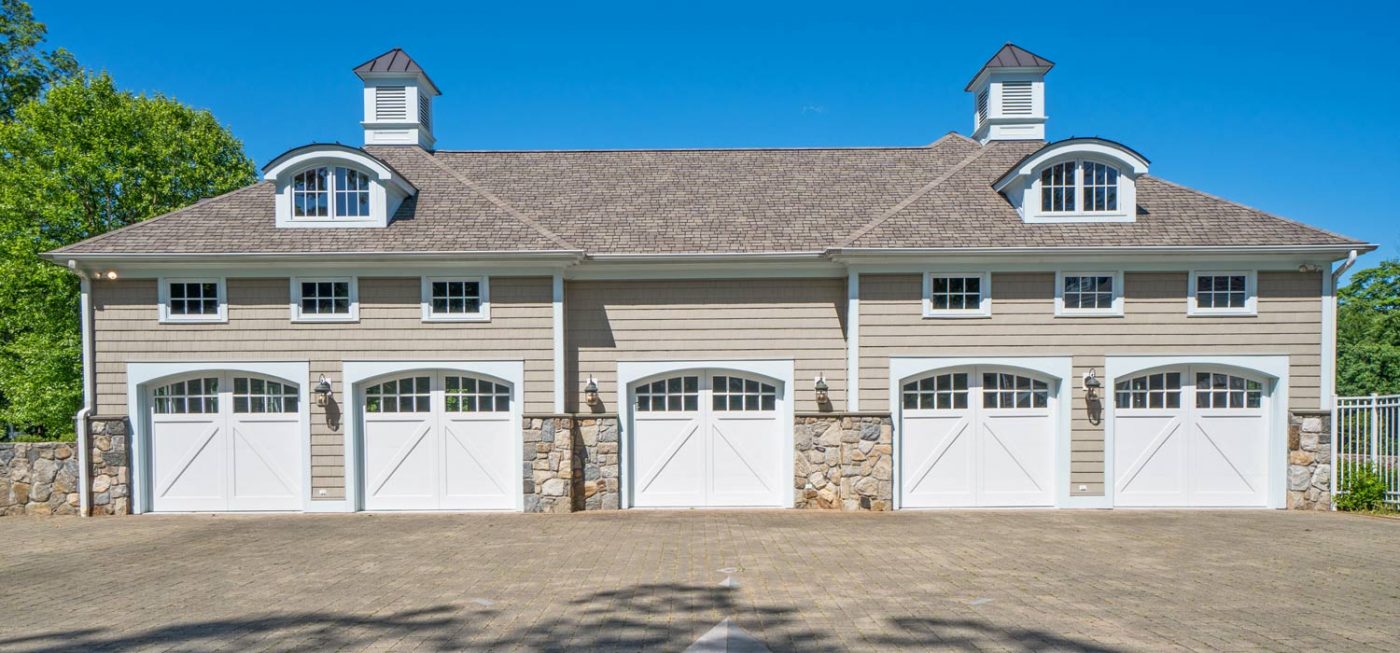 An attached, 5-car garage and a detached, 2-car garage provide ample space for automobiles. The 2-car garage also includes a heated room with plumbing that could be used as a studio, office, or modest “man-cave.”