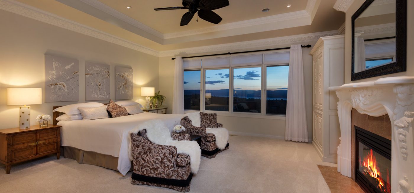 In addition to the poolside terrace that boasts lake and city views, the home’s outdoor spaces overlook acres of orchards currently planted for Gala apples. The soil, recently tested by a local winery, was found to be suitable for wine grapes and excellent for cherries.