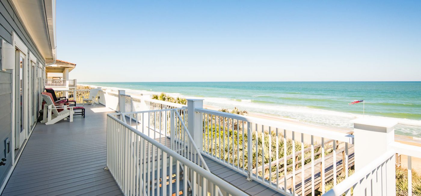This lovely, tri-level residence offers 100 ft of beach frontage, and is situated just steps from the sparkling Atlantic Ocean in Flagler Beach, Florida, a beach known for its miles of peaceful, cinnamon-hued sand. With a private boardwalk (or “dune walk”) leading from the Property directly onto the sand – along with several large, oceanfront decks – the home takes full advantage of its location and views!