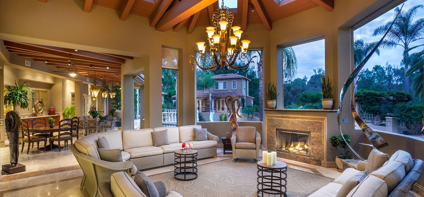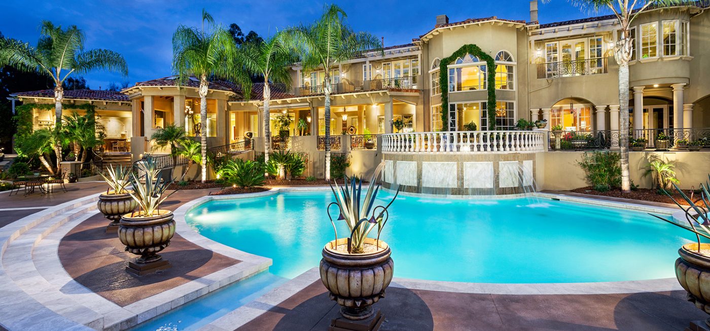 In total, the property offers 15,321 square feet of luxurious living space, with 11 beds, 11 full and 3 half baths, all situated on five manicured acres (making it one of the largest single-parcel lots within the Fairbanks Ranch community).