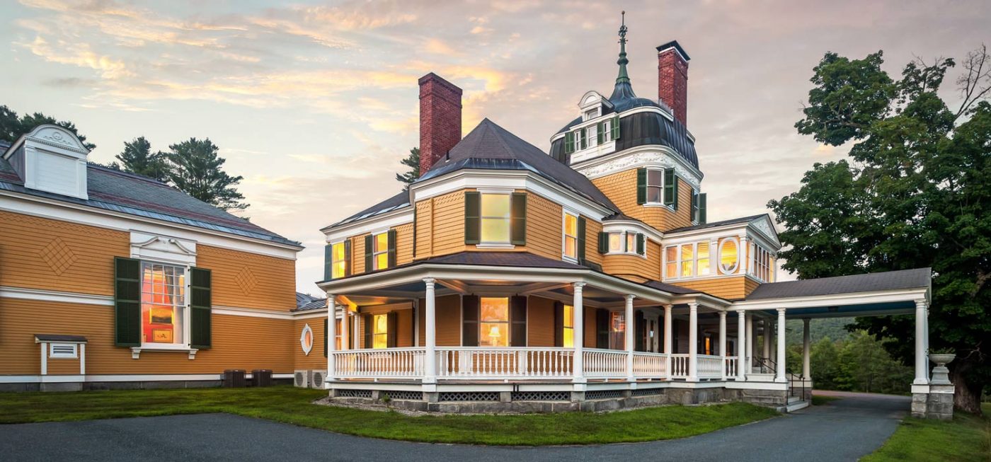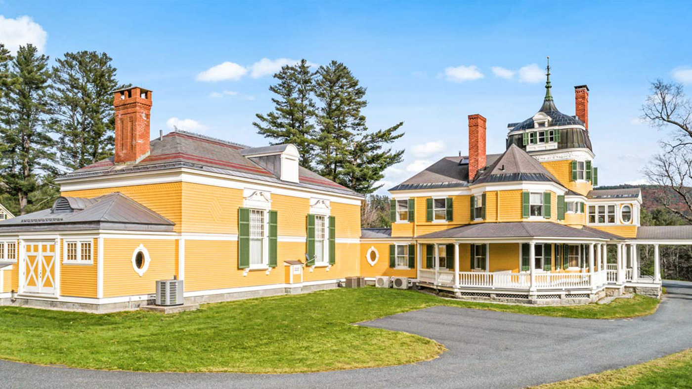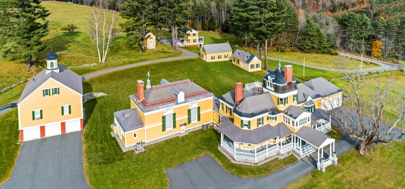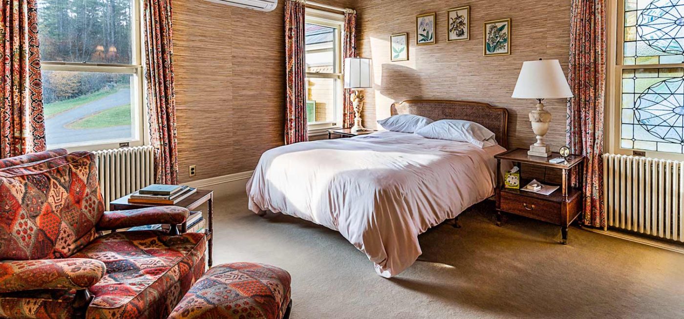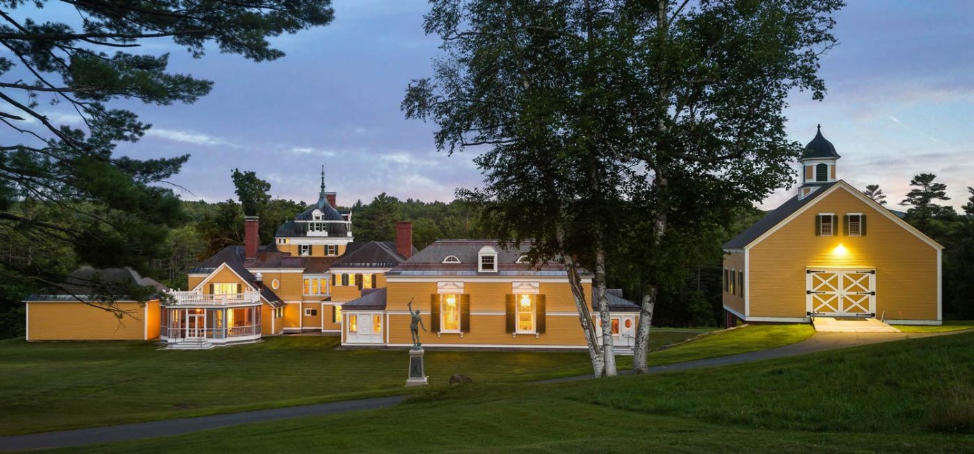 Bordered by the Sugar River and offering views of Mt. Sunapee, the estate is extraordinarily serene, and is set within protected fields and forests, ensuring the longevity of its privacy and impressive vistas. In addition to the +/- 7,500-sf main residence, the grounds include several outbuildings: a tri-level barn, heated workshops, detached, gentleman’s library, and 4-bedroom guesthouse currently in use as caretaker’s quarters.