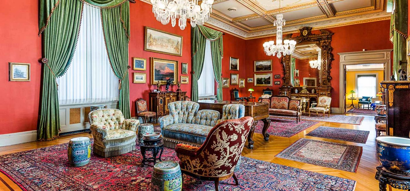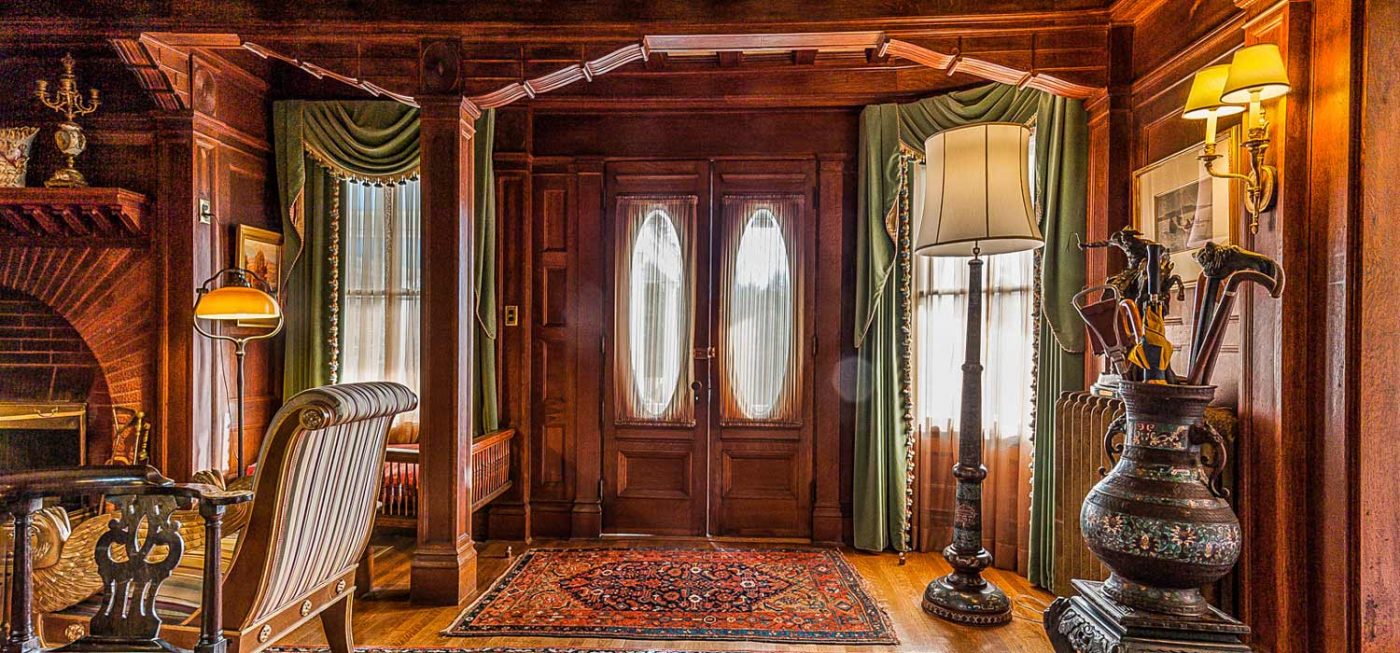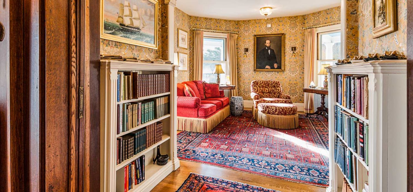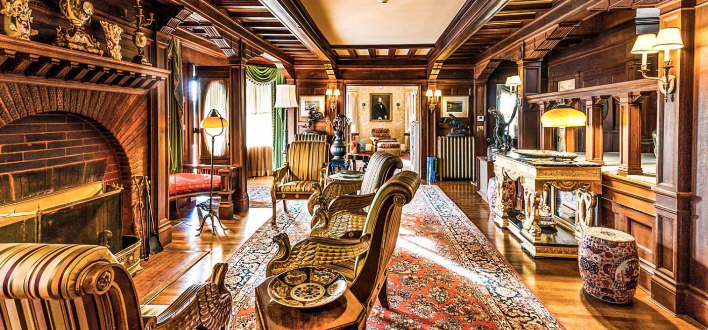Four bedrooms, 4 full and 2 half baths are located in the main residence, while common areas reflect the home’s Victorian style, and include an impressive gallery/great room with a gilded ceiling, reception hall with ornate fireplace, and modernized kitchen with a wet bar and pantry.