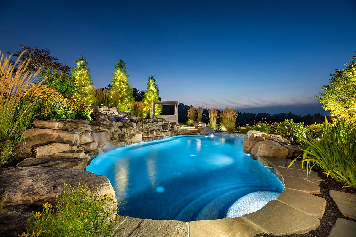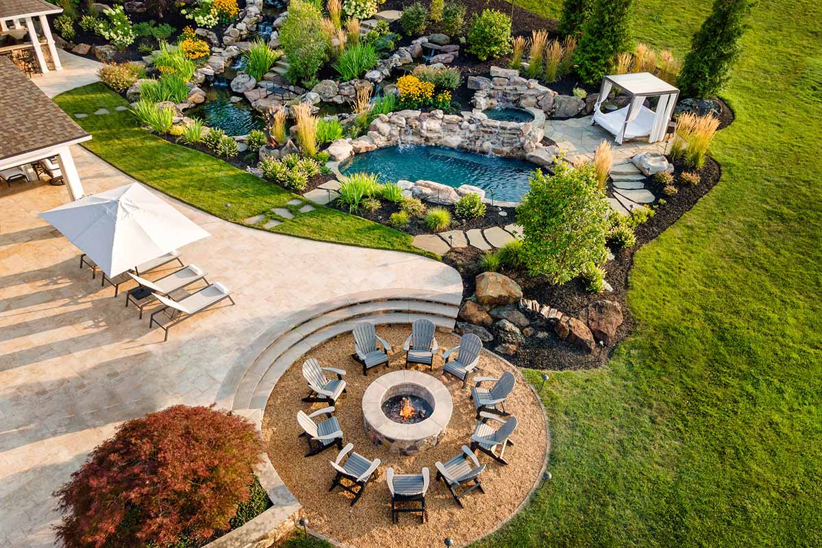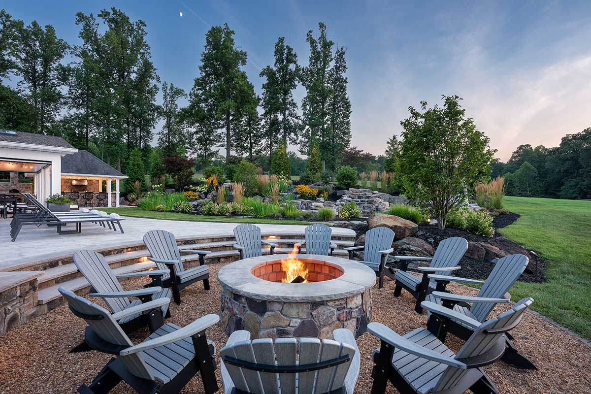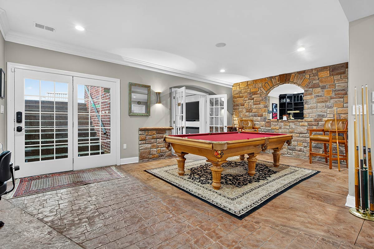 Outdoor living areas are equally refined, with rear grounds anchored by a granite pool and spa with cascading waterfalls, a stone patio, lush landscaping, and programmable lighting. A firepit terrace and outdoor kitchen—featuring a Forno Bravo pizza oven, Blaze grill, Memphis pellet smoker, and bar seating—create the perfect outdoor setting. Recreational enthusiasts don’t even have to leave the property, as a PGA-quality putting green and chipping area, along with a stocked 1.8-acre pond complete with dock, keep activities at your fingertips.
