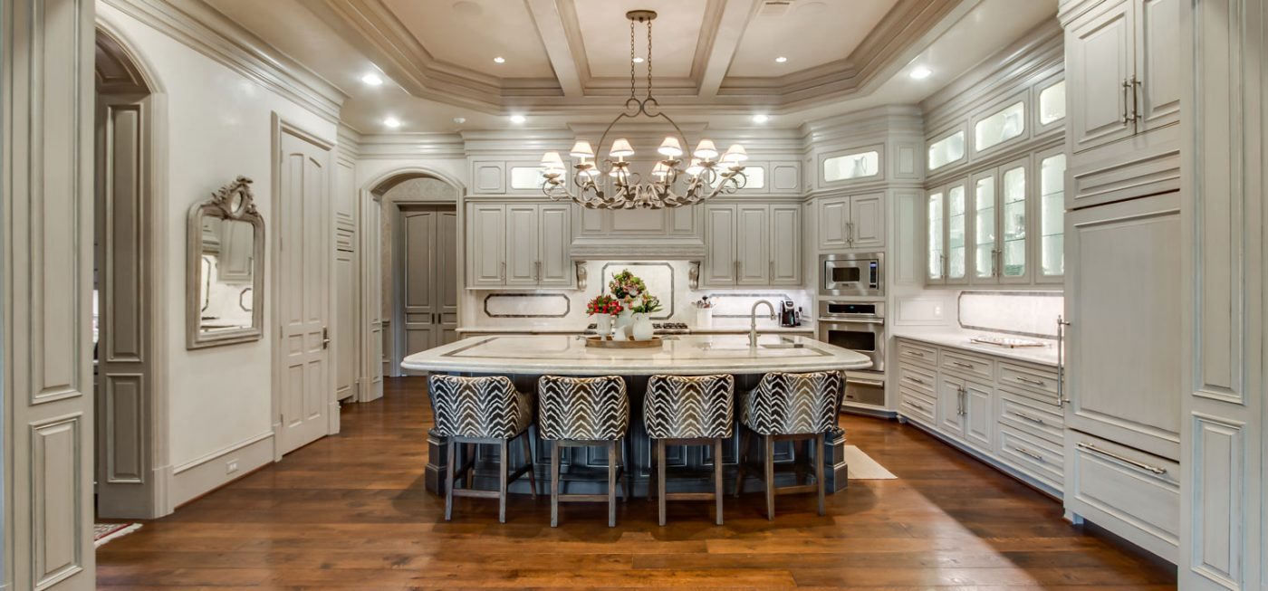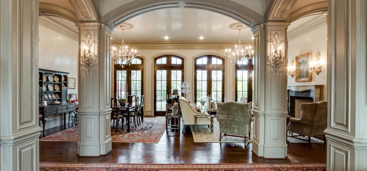 Spacious rooms outfitted in elegant woodwork and fine finishes characterize this lovely Property, while custom-made doors, bespoke molding, and hand-beveled and scraped French oak floors create an atmosphere of approachable elegance. Upon entry, a grand foyer offers vaulted ceilings and views of the open-plan living and dining rooms flanked by exquisitely trimmed columns and archways.