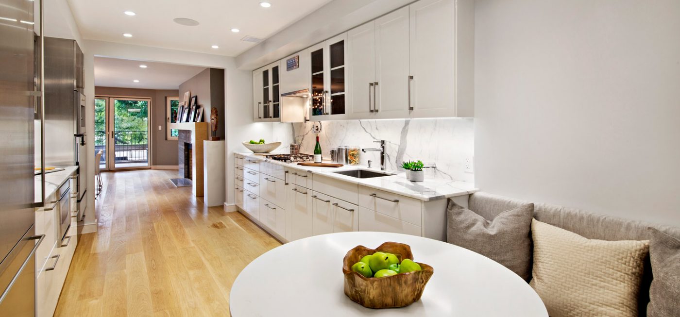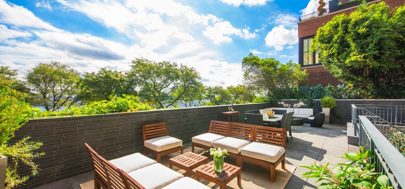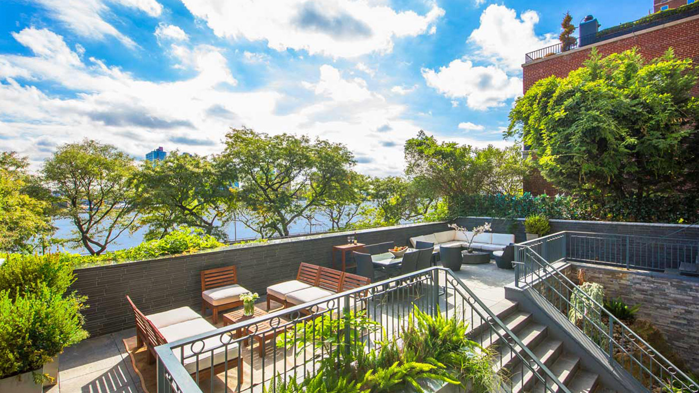 The Property’s finishes and fixtures are exquisite, and include features such as 6-inch white oak floors, Bardiglio marble fireplace accents, NanaWall doors, mahogany millwork and Carrara marble baths with radiant heat. A chef’s kitchen equipped with top-of-the-line appliances from Miele and Gagganeau is adjacent to a great room with sumptuous living and dining areas. Two spacious bedrooms with en-suite baths – along with a spacious outdoor living area offering waterfront vistas of some of the most iconic landmarks in New York City – complete the main level.