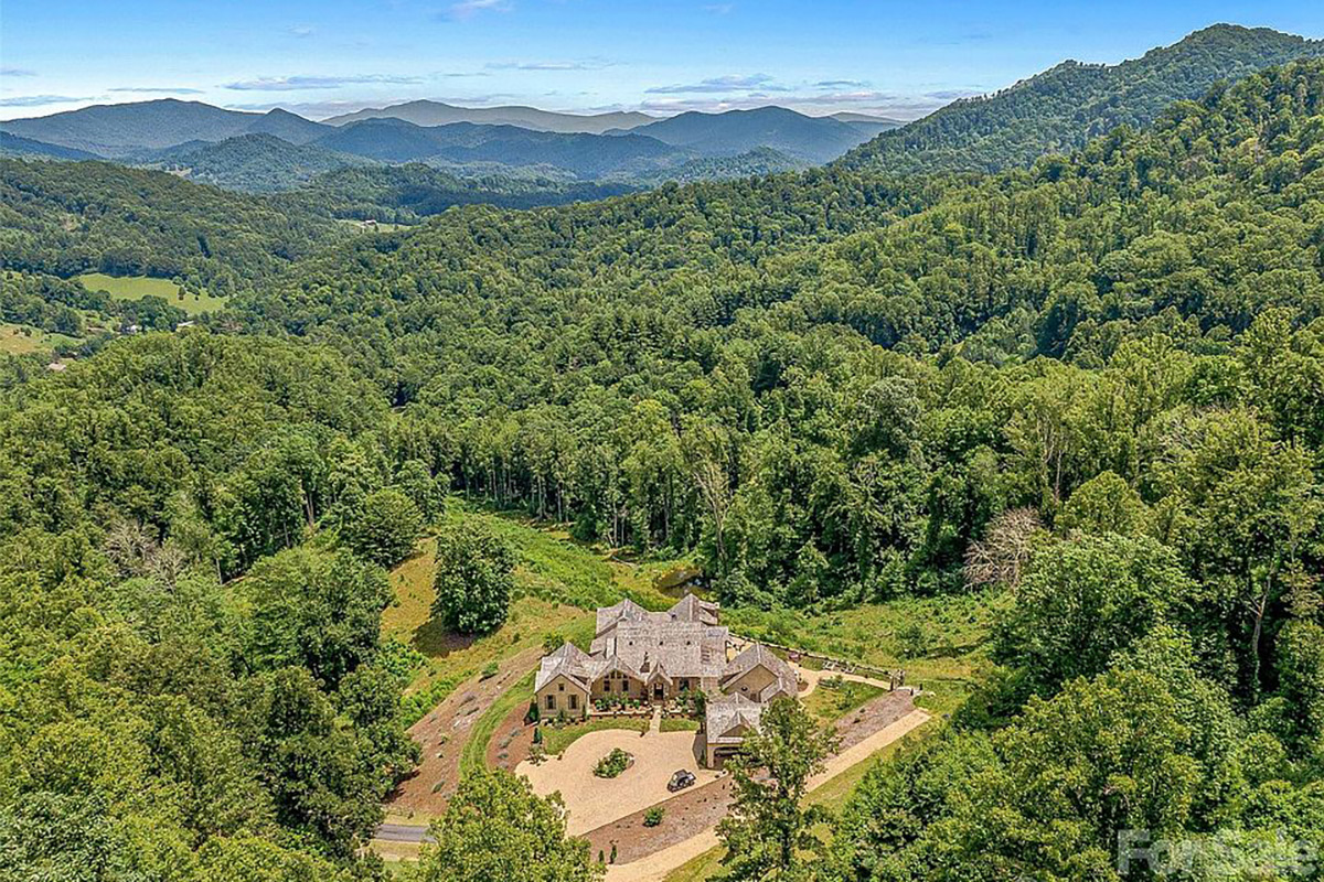 Spanning nearly 44 acres in the Blue Ridge Mountains at an elevation of 3,560 ft, this charming retreat captures breathtaking views.
