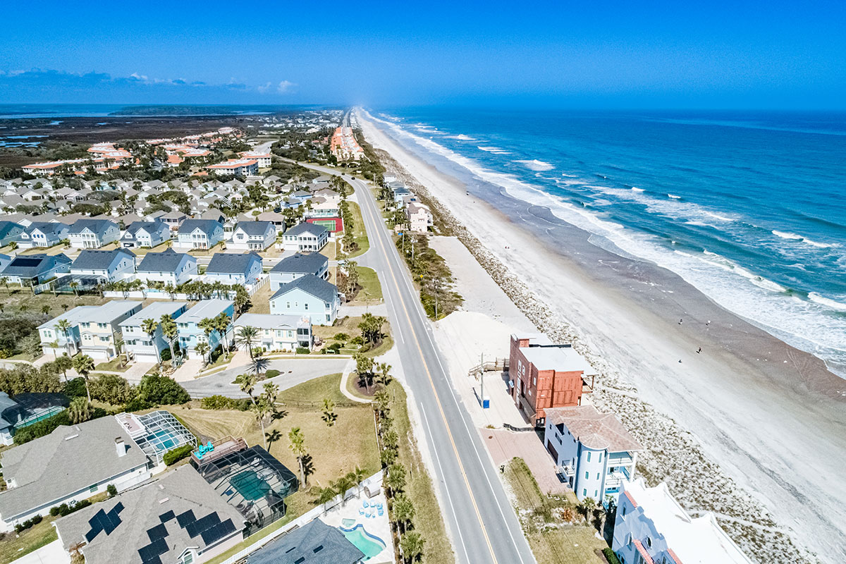 Vilano Beach is known for its quiet, residential atmosphere and natural setting between the Atlantic Ocean and the Tolomato River, creating a distinctive barrier-island environment rich in wildlife and coastal scenery. The community sits only about two miles from historic downtown St. Augustine—America’s oldest city—providing easy access to acclaimed dining, cultural landmarks, and waterfront attractions while maintaining a relaxed seaside feel. Residents enjoy nearby parks, a public fishing pier, surfing and skimboarding along the Atlantic, and scenic drives along the A1A Coastal Byway connecting Vilano Beach with the upscale golf and resort communities of Ponte Vedra Beach to the north.