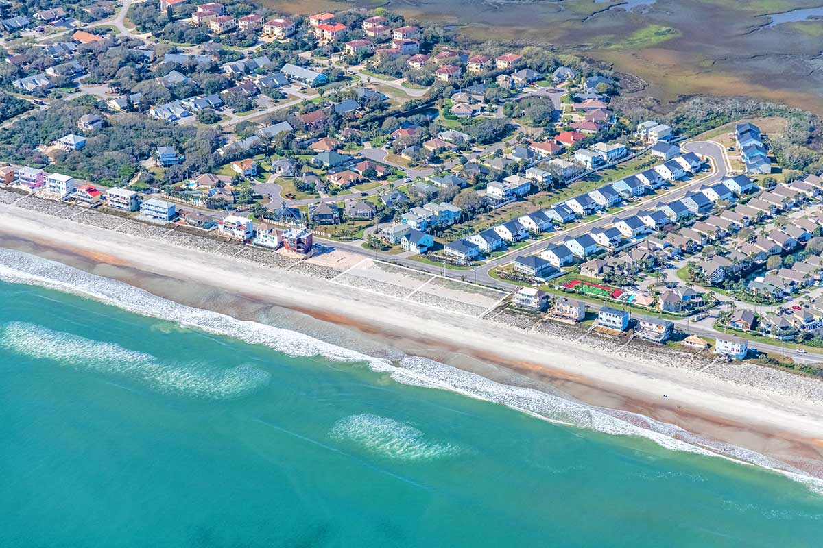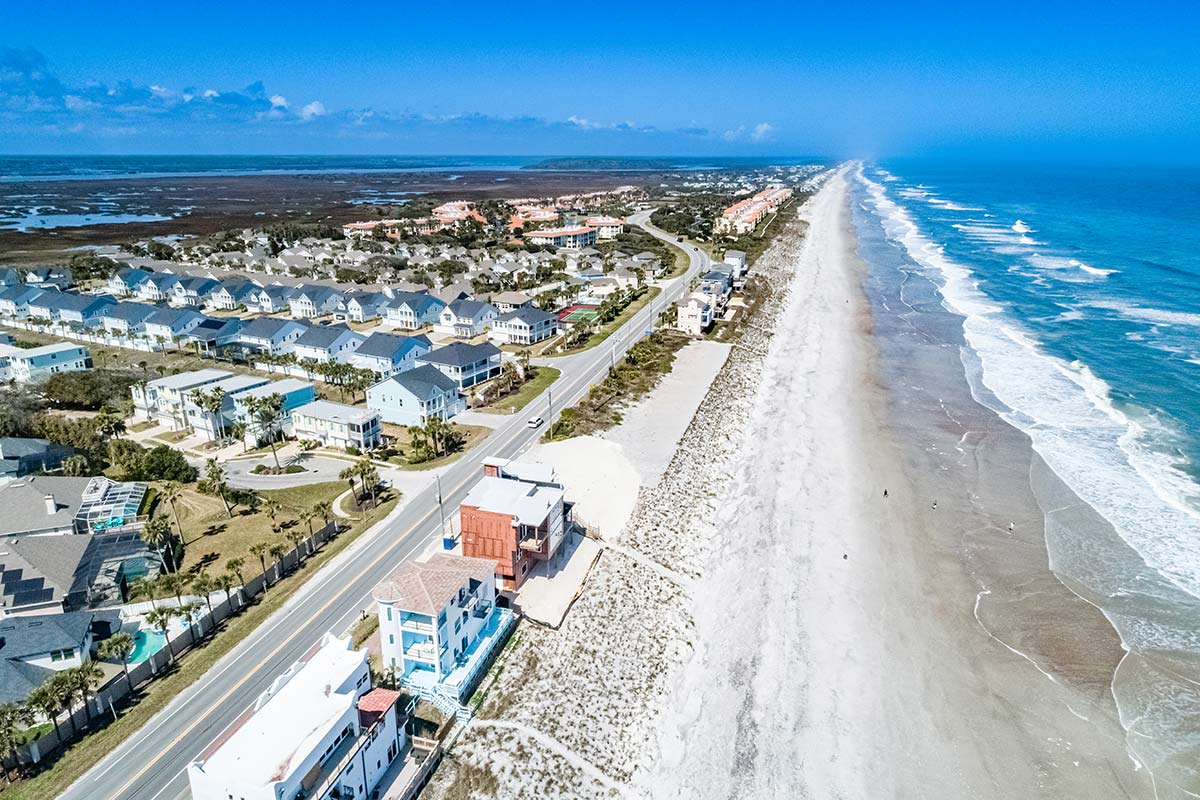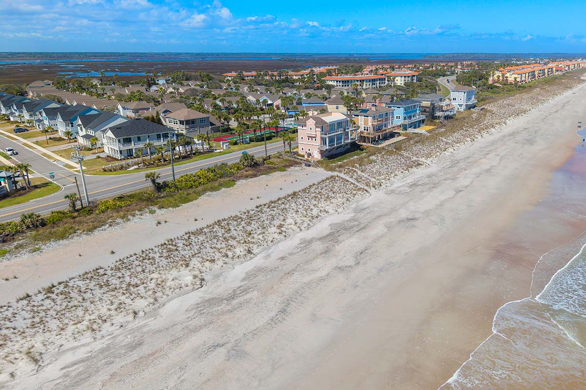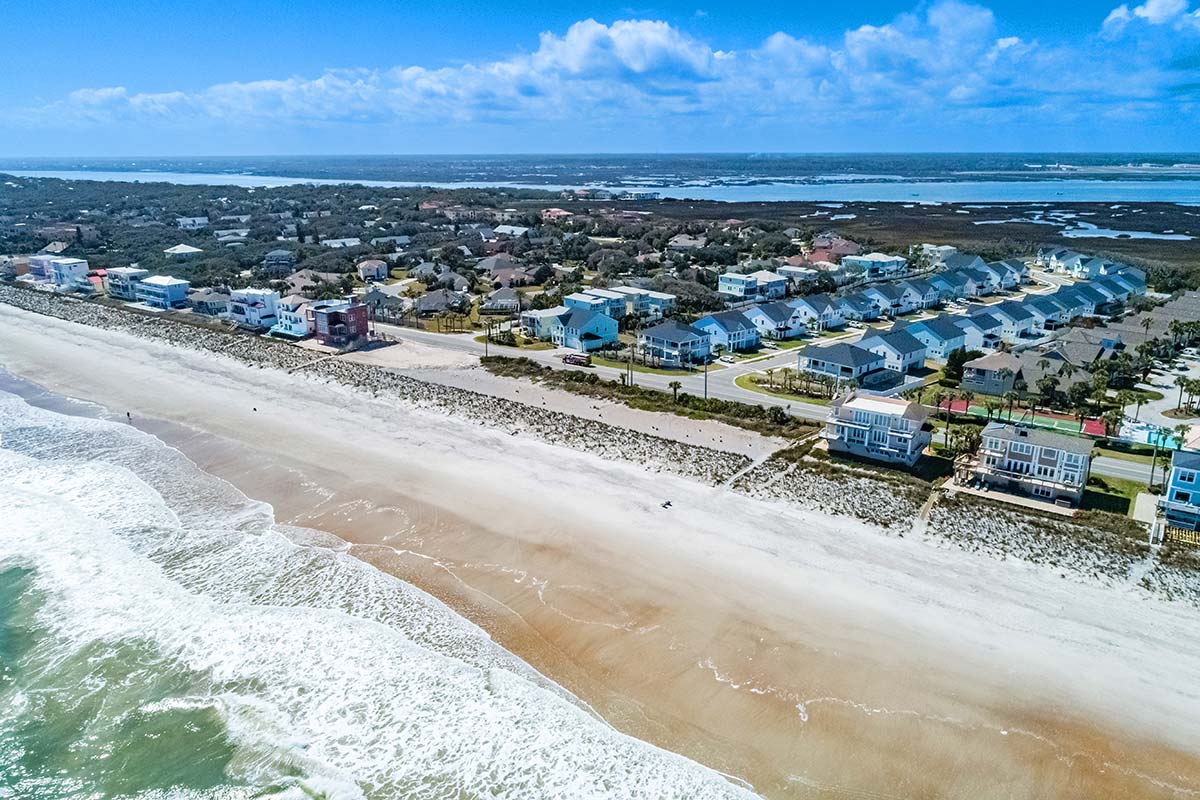 Vilano Beach is known for its quiet, residential atmosphere and natural setting between the Atlantic Ocean and the Tolomato River, creating a distinctive barrier-island environment rich in wildlife and coastal scenery. The community sits only about two miles from historic downtown St. Augustine—the oldest continuously inhabited European-established settlement in the continental United States—providing easy access to acclaimed dining, cultural landmarks, and waterfront attractions while maintaining a relaxed seaside feel. Residents enjoy nearby parks, a public fishing pier, surfing and skimboarding along the Atlantic, and scenic drives along the A1A Coastal Byway connecting Vilano Beach with the upscale golf and resort communities of Ponte Vedra Beach to the north.