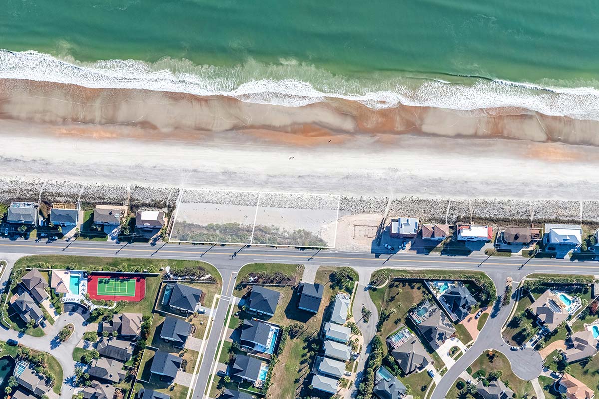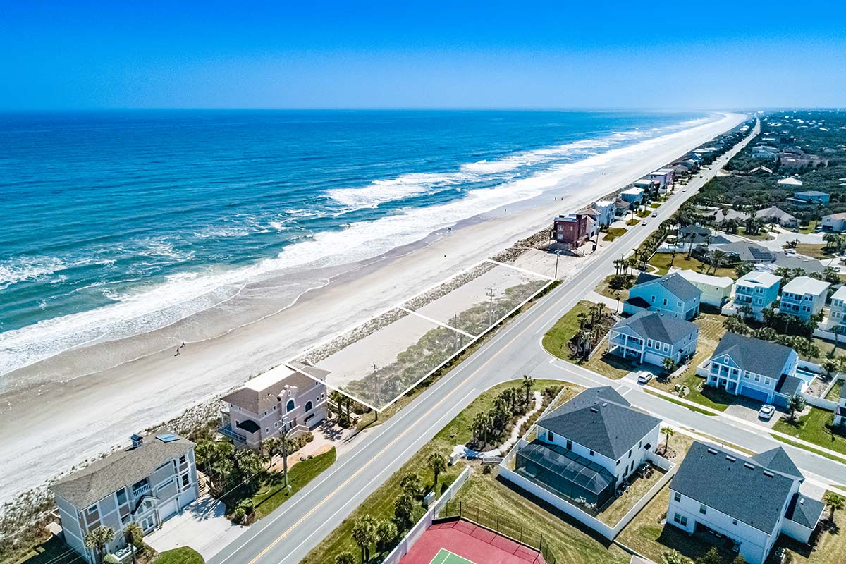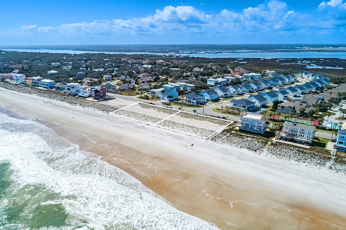 These two contiguous one-acre parcels present a rare opportunity along the coveted coastline of Vilano Beach in St. Augustine, positioned at the northern edge of the city where the laid-back character of Vilano meets the prestigious seaside communities of Ponte Vedra Beach. With an impressive 186 and 188 ft of frontage, the parcels offer expansive width rarely found along this stretch of Florida’s Atlantic shoreline. Ready for construction prep, the existing build sites are suitable for a range of residential uses, including a private coastal residence or short-term/vacation rental. Each parcel offers flexible development potential, with buildable options that include a single-family home with a guest cottage and pool, or a multi-family/duplex configuration. Just steps from the sand, the parcels are surrounded by established residential enclaves, making them ideally suited for a private coastal retreat.