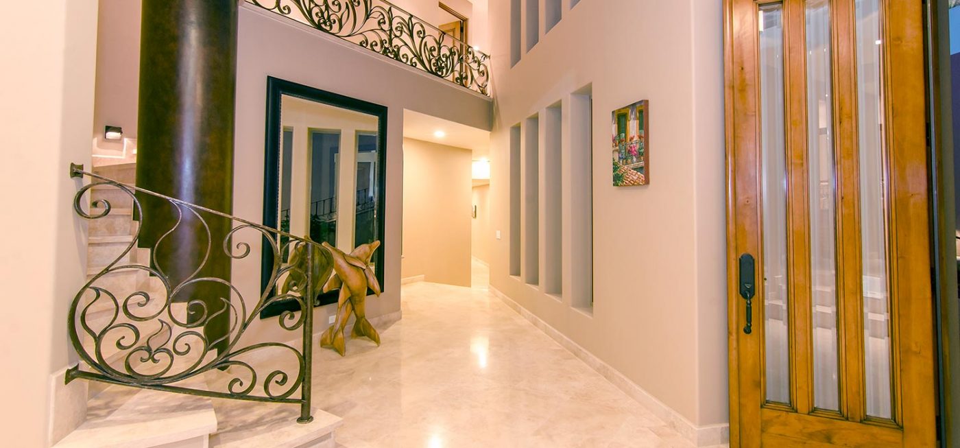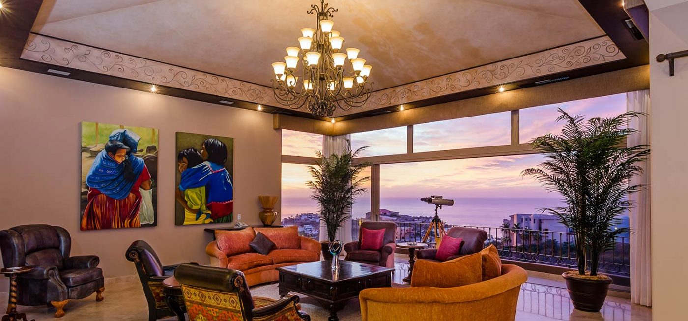 Perched near the top of one of the tallest hills in the desirable Pedgregal community, this beautiful estate offers sweeping ocean views and calming ocean breezes. The property’s hillside elevation also allows for views of lower Pedgregal, which presents a beautiful collage of luxurious homes and unique architecture. As the evening arrives each day, the residence is perfectly positioned to take in the area’s awe-inspiring sunsets, which turn the sky into a rich blend of purples, reds, oranges and pinks.