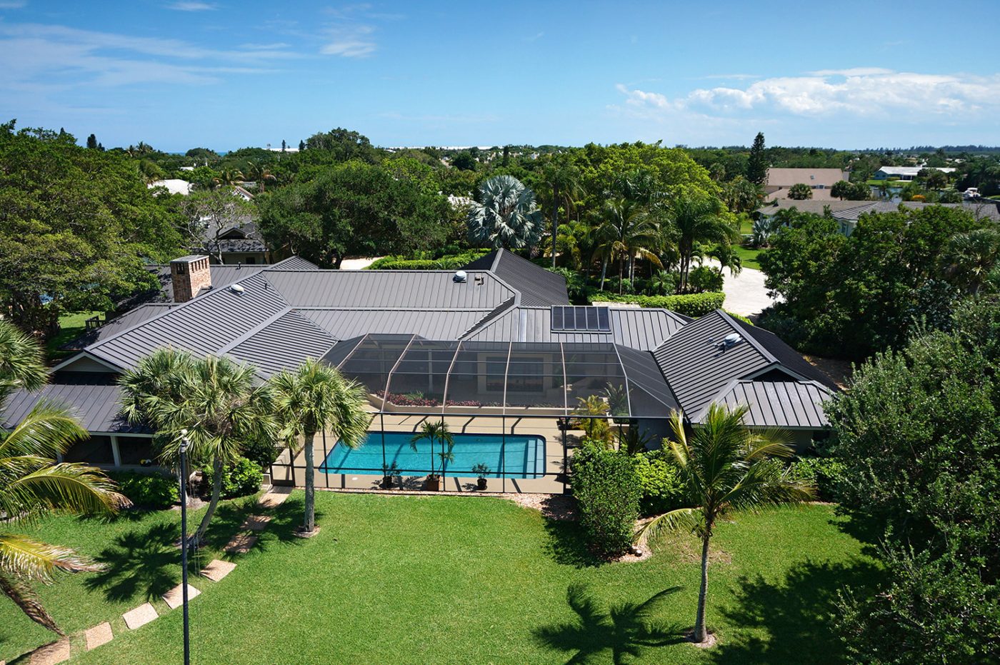 The estate’s open floor plan was designed to optimize water views, and to allow the gentle waterfront breezes to cool the property. Additional features include a large, central patio with a screened pool, a commercial-grade metal roof, 3 total garages, beautiful landscaping, and frequent sightings of dolphins and manatees!