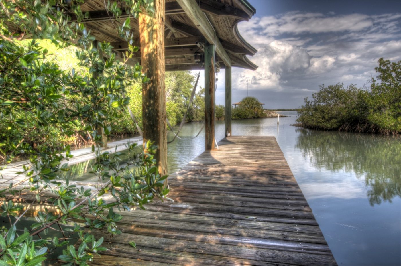 Lush landscaping offers seclusion while also preserving beautiful waterway views from the second story of the residence. (There’s even room for a helipad!)