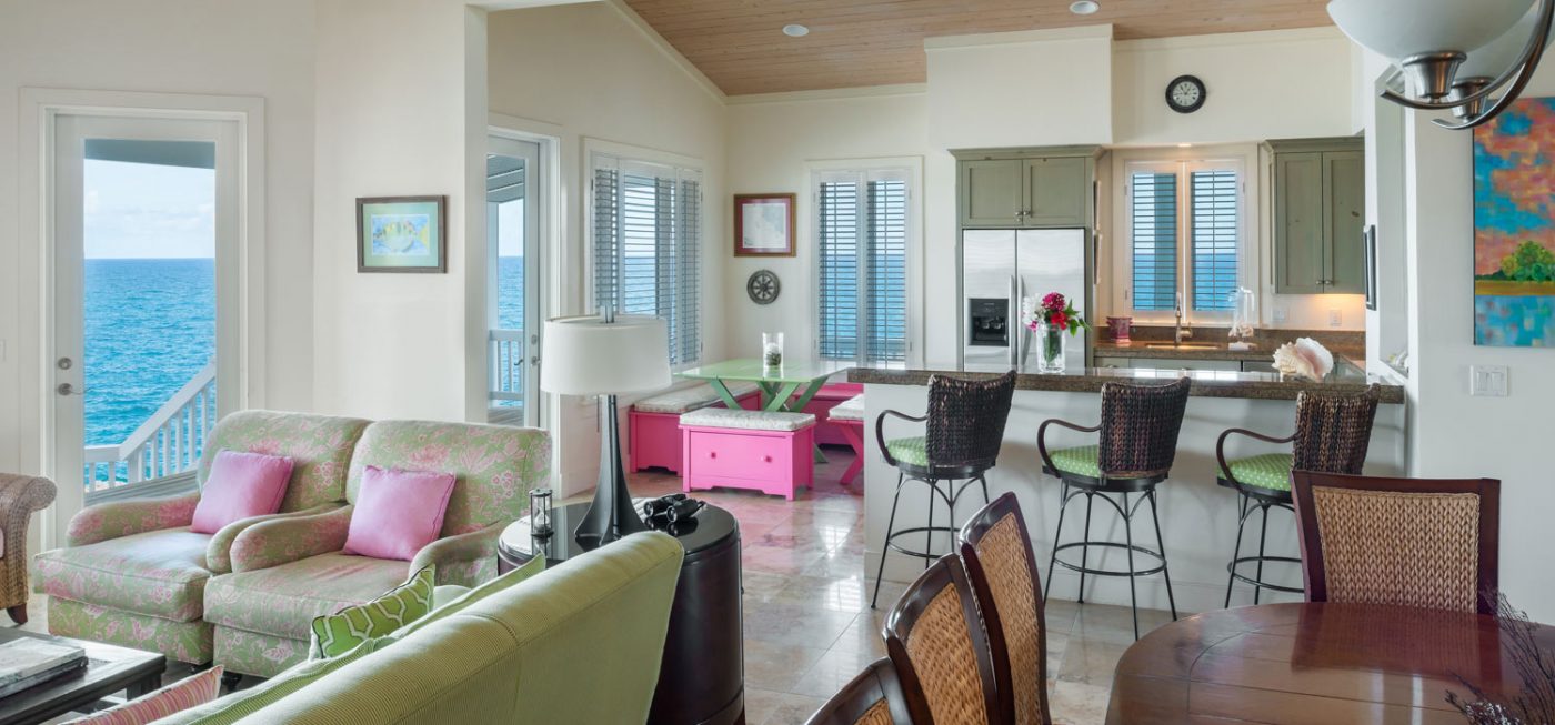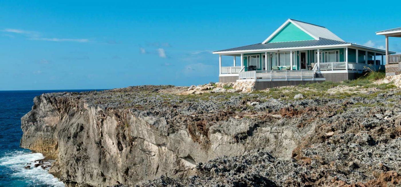 This luxurious oceanfront villa in The Abaco Club on Winding Bay is sited on a bluff directly overlooking the Atlantic Ocean.