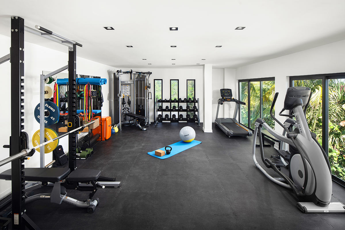 At the heart of the residence, a meticulously designed commercial-grade kitchen—featuring Wolf dual ovens, a Hoshizaki refrigerator, and expansive stone counters—functions as both a chef’s workspace and an architectural focal point. Flexible dining spaces accommodate everything from formal gatherings in the interior dining room to al fresco dinners on the beach deck or casual breakfasts poolside. Recent (2021) enhancements led by Togu Design of Miami further elevated the estate, which introduced the sports center, four garden bungalows, a beachfront gym, expanded kitchen facilities, a second primary suite, and an owner’s office with meeting space, each seamlessly integrated into the villa’s original design.