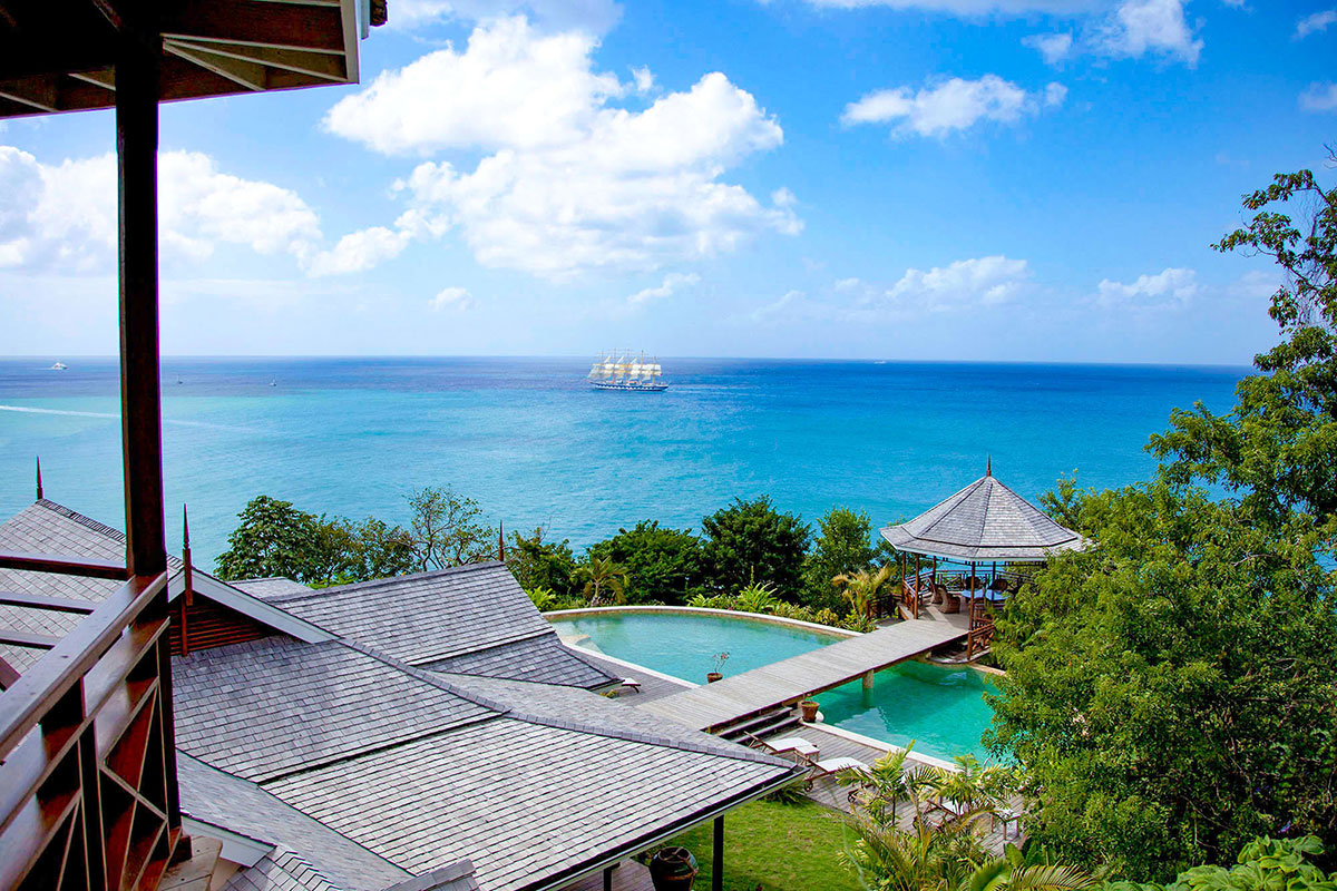 Villa Susanna is nestled on the southern tip of Marigot Bay, which American novelist James A. Michener affectionately labeled “The Most Beautiful Bay in the Caribbean.” Set within a three-acre tropical garden, the villa offers an unparalleled 270° panoramic view of the turquoise waters, rugged cliffs, and lush greenery that define this stunning coastline. Combining Caribbean elegance with Italian design, the villa seamlessly blends into its natural surroundings, creating a serene and sophisticated retreat for up to 14 guests.