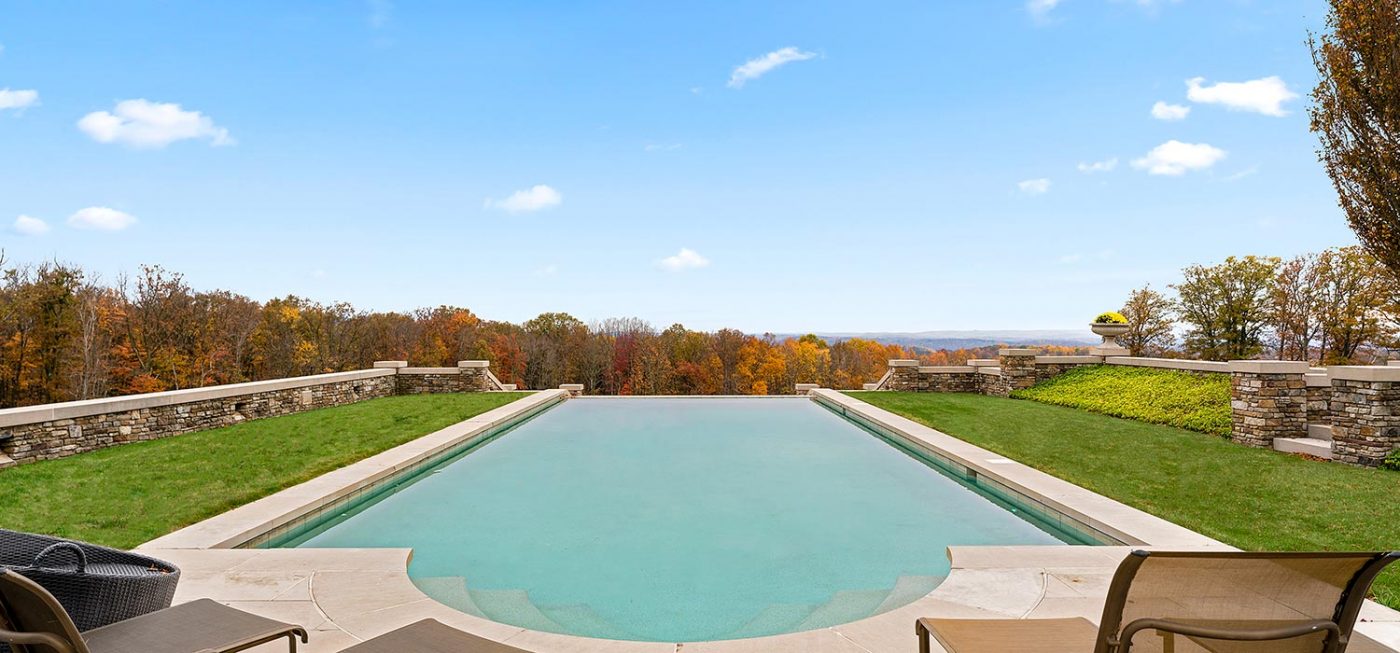 Mechanicals and smart home features include a Lutron system and automatic blinds as well as geothermal heating and cooling. The property’s three wells are purified in a separate building that houses a water treatment system, whole-house backup generator, staff office and half bath. A 1,000-sf equipment garage offers additional storage for landscaping equipment, and a mechanical building adjacent to the pool stores equipment and accessories.