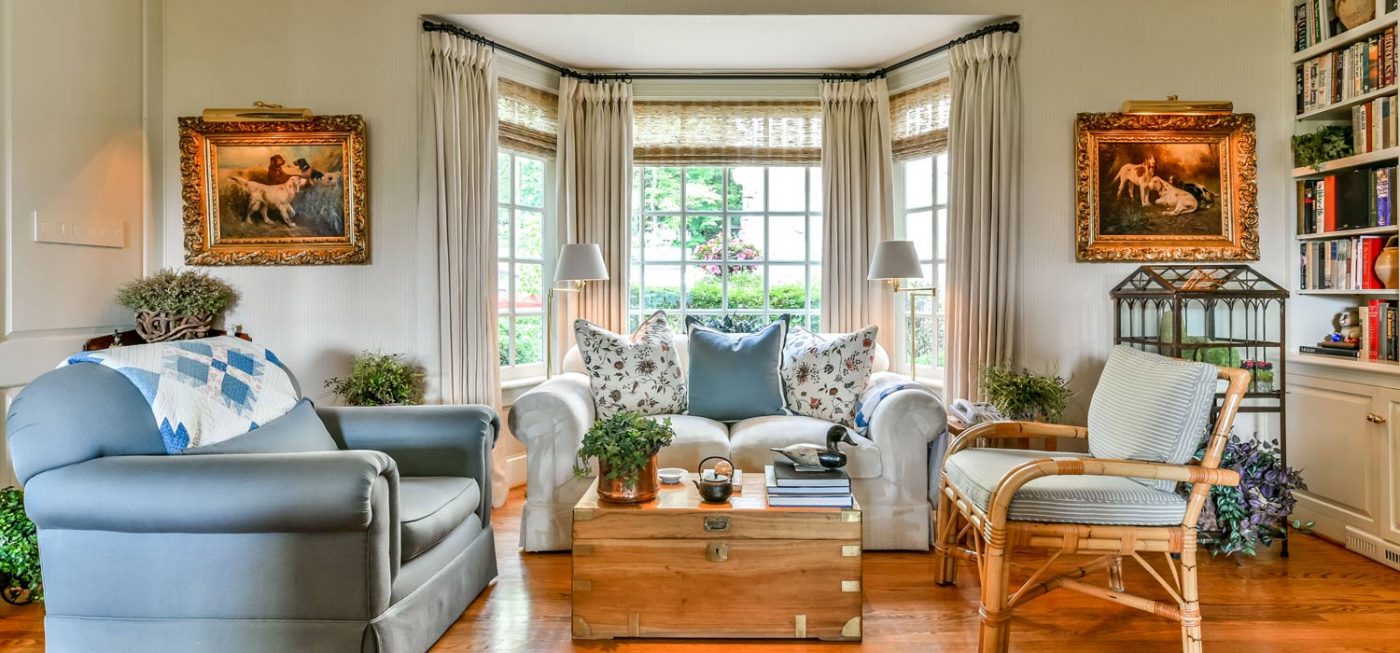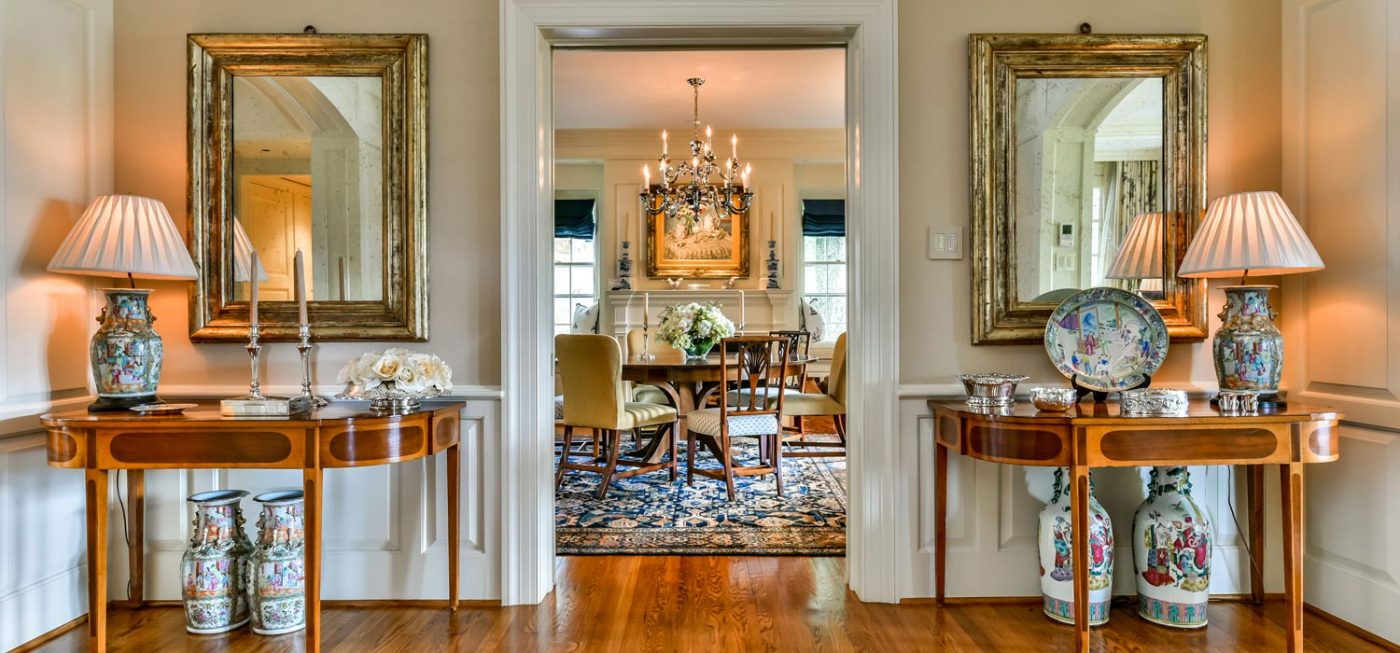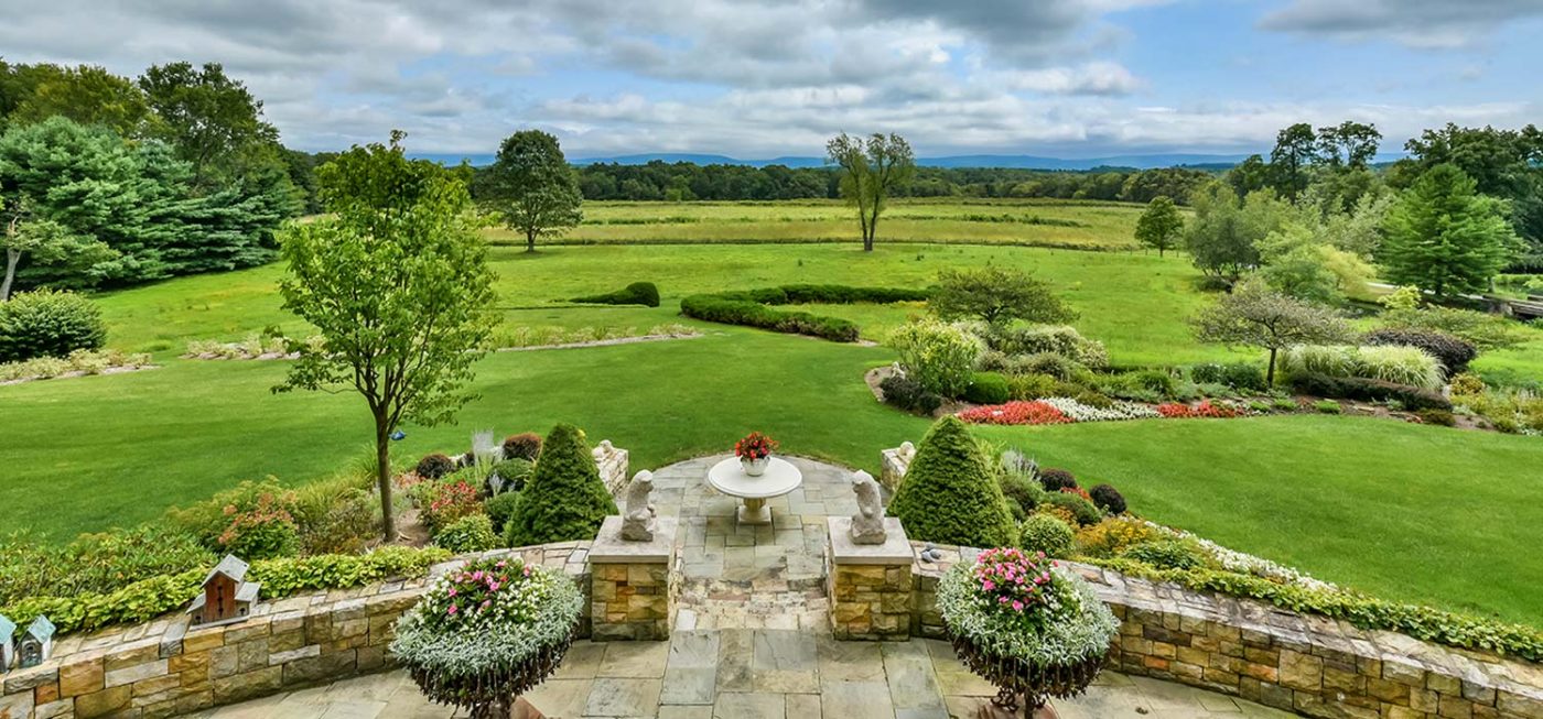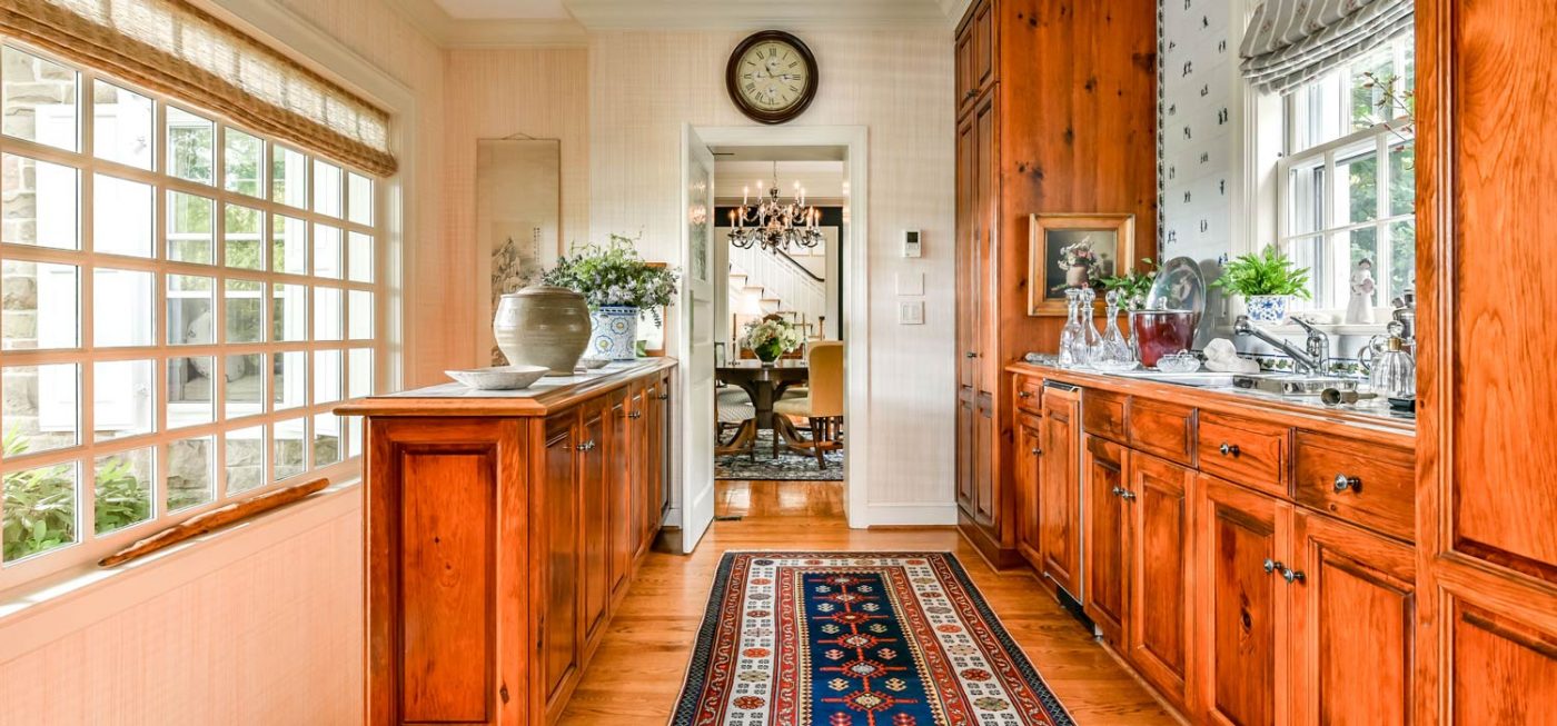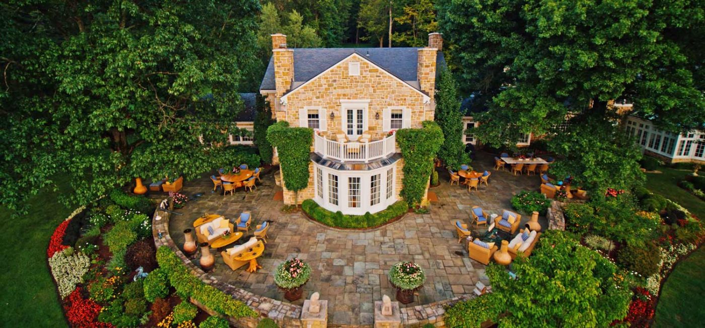 Cherished and maintained to perfection by the same family for more than thirty years, Woodmere offers beautiful country views and miles of walking trails for enjoying the great outdoors. The property’s handsome sandstone exterior and slate roof present an Old-World design influence, while interiors boast a relaxed, understated elegance.